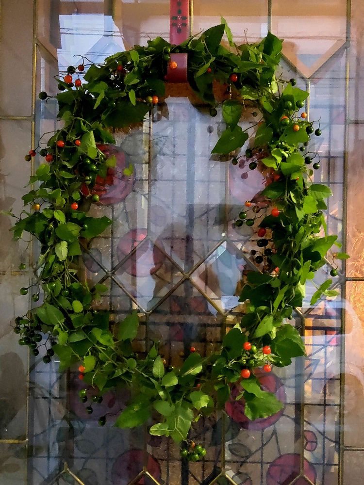 ヒヨドリジョウゴのリースを作り玄関ドアに飾っみました。