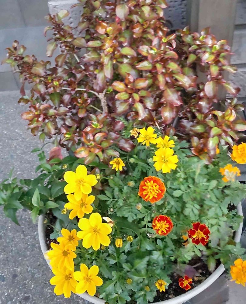マリーゴールドは、育てる選択肢に入れていなかったのですが、値引き品50円だったので、選んでみました。(あまり好きではないというか……💦)黄色系で寄せ植え。