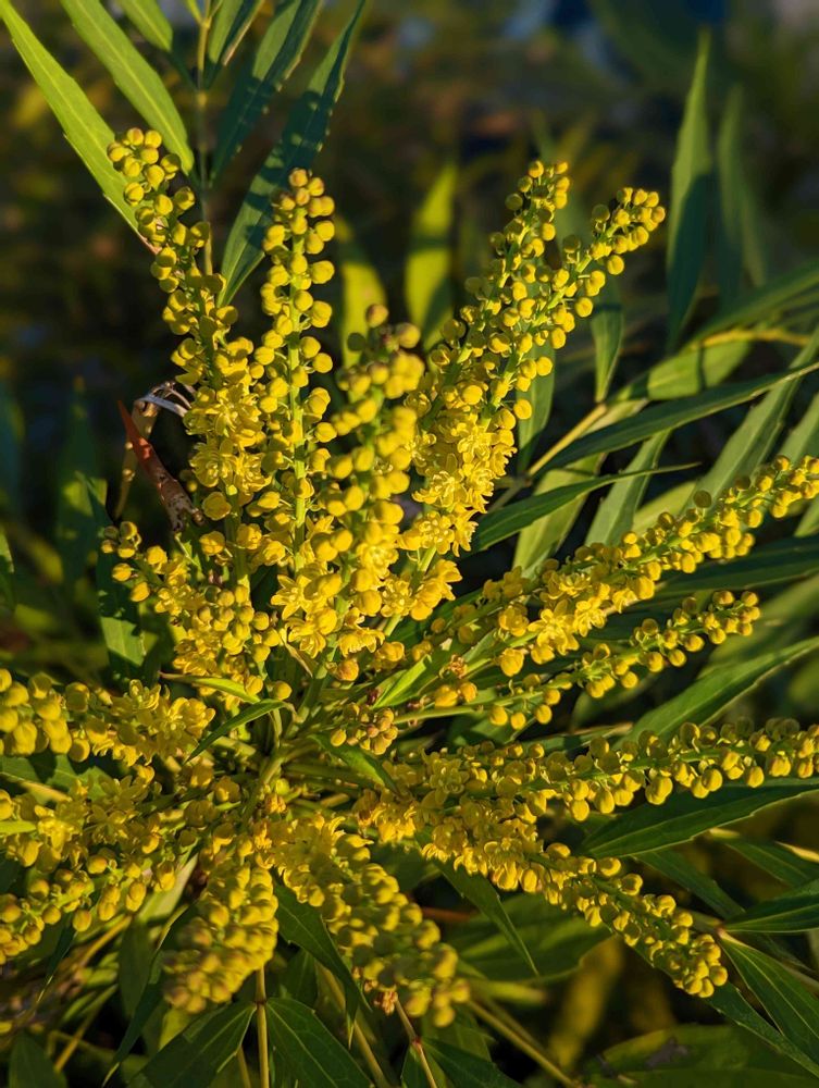 ヒイラギナンテンに似るが葉が細い。