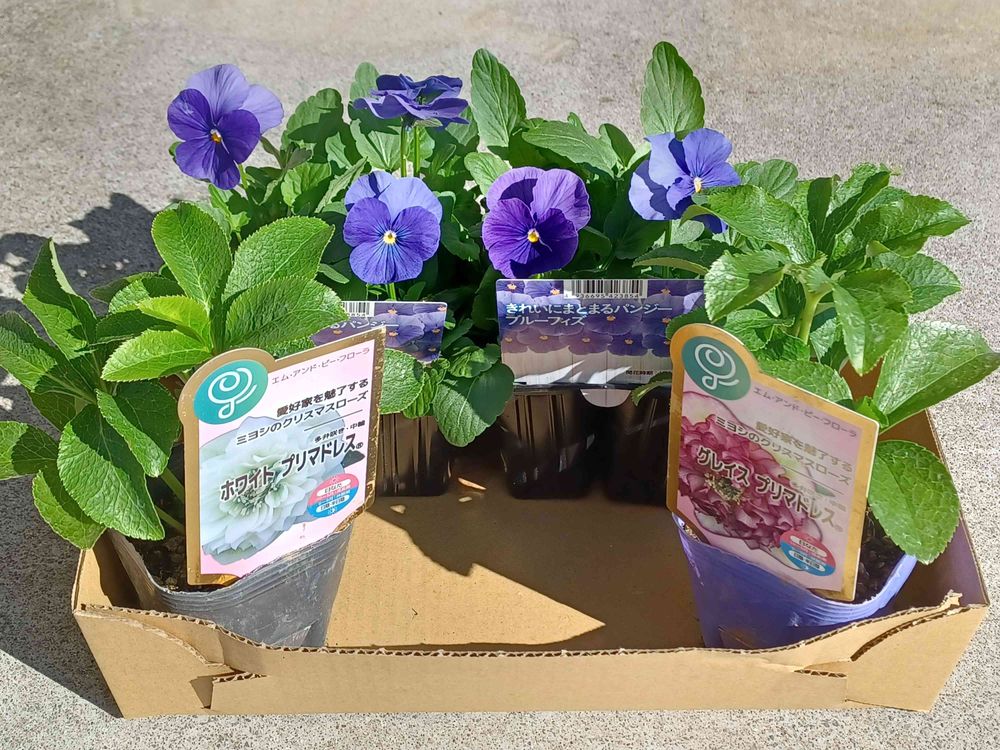 結局一番お安いビオラ4株入りのを2つ購入しました。寄せ植え出来ないないね😅