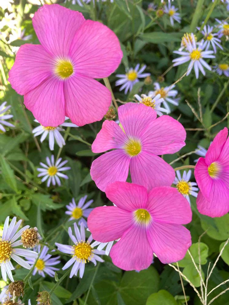 オキザリスのピンクに紫のノコンギクが可愛いですね💜❤️💓