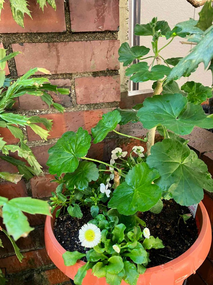 スーパーゼラニウムの足元にビオラとデージーを植えました💡