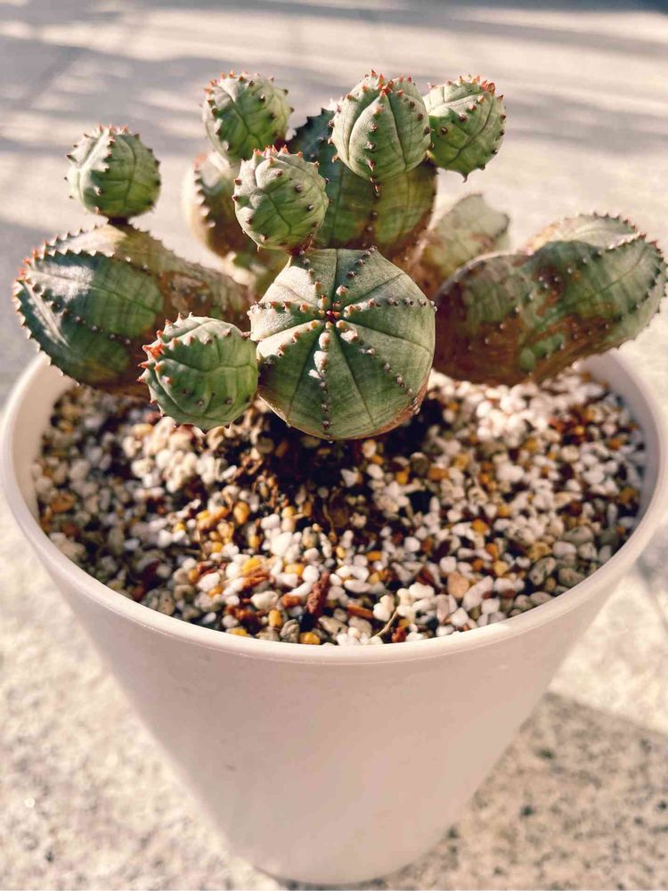 中心の株に、ぐるりと二段になって子株が付いていて、下の段の子株はカットしました😌