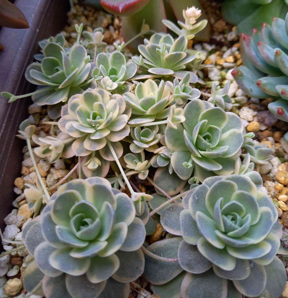 手に入れたばかりの時はすっかり徒長して斑も抜けたようになってたので、普通の子持ち蓮華だと思いました。