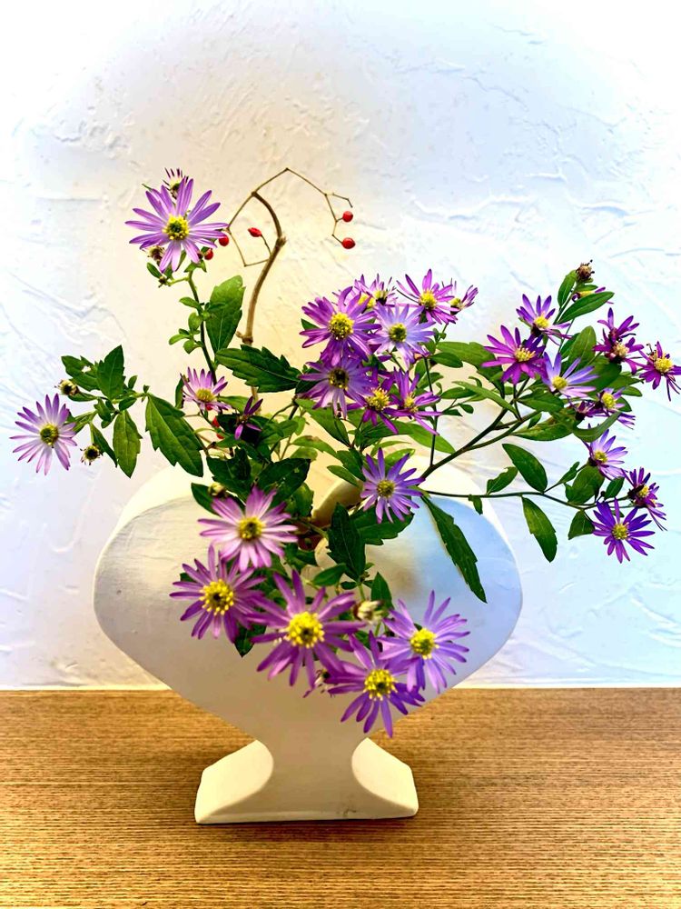 素敵な花器に紫が映えて美しいです。子規の俳句にもぴったりの風情です❤️