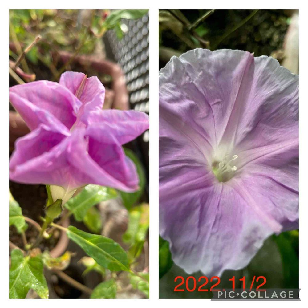 2022.11/2のあさがお🤗朝のつぼみ無事開花🌸また明日も開いたままかも😳😳😳