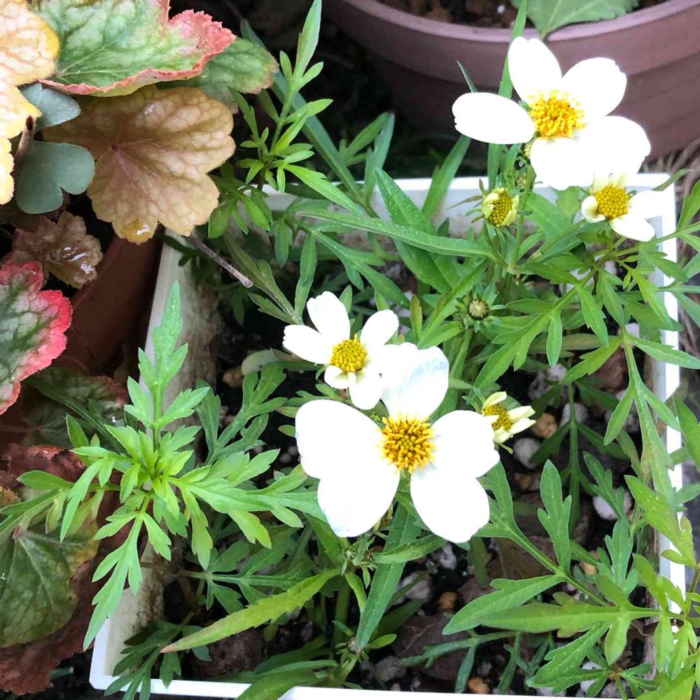 去年のウインターコスモスが冬越しして1メーター以上になって花が咲き出したので、1週間前に先を切ってさし芽したらもう付いたらしく花を咲かせています🤗🌿🤍
