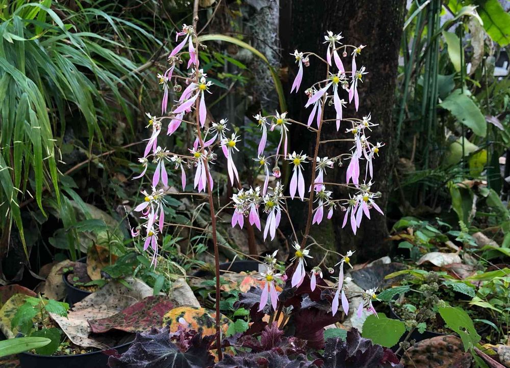ジンジソウ(ムラサキジンジソウ?)が咲きました💕。「人字草」よりも「ハの字草」って感じかも😊。