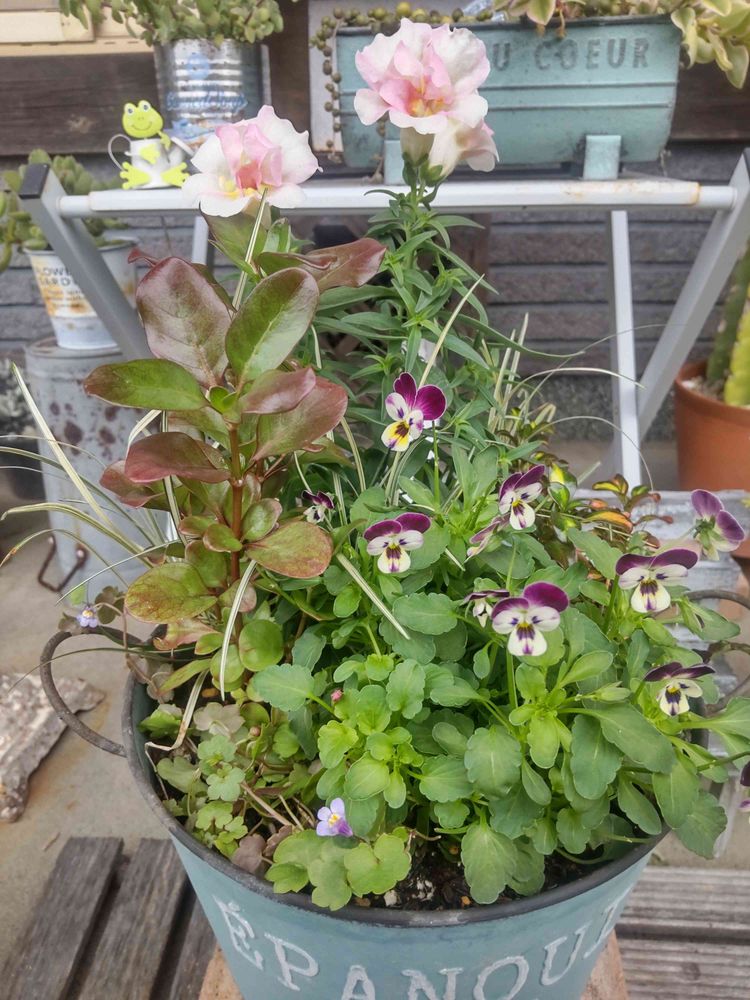 可愛いキンギョソウを見つけたので、寄せ植え作りました