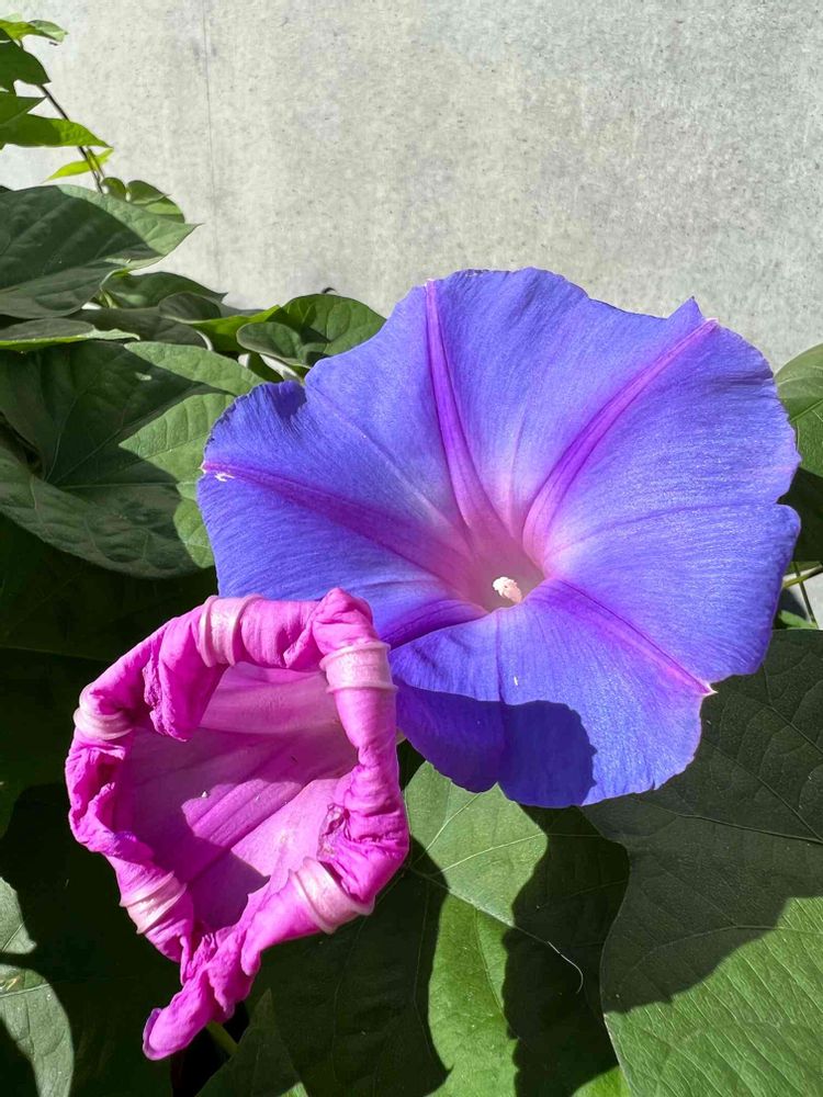 なぜか、この色味での2輪咲きが多く、ピンクが先に萎んでいます。紫からピンクに変化するのかしらん。