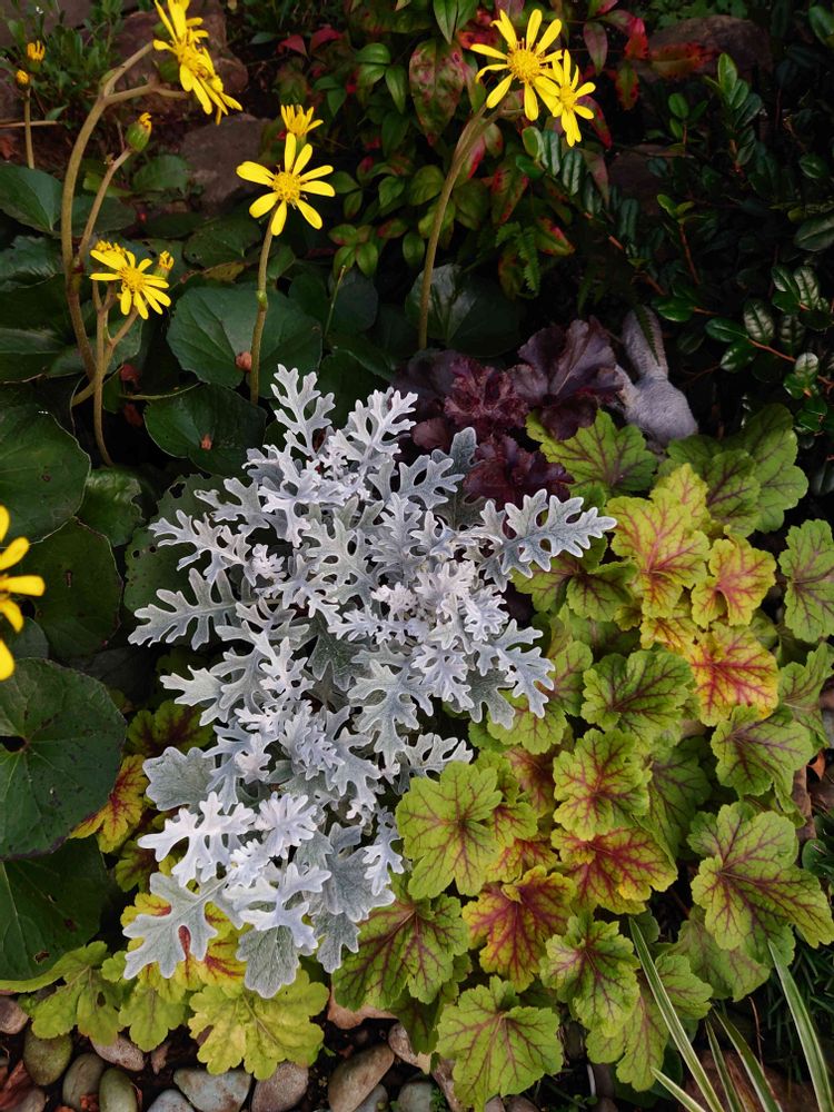 シロタエギク,ツワブキの花,ヒューケラゴールドゼブラの投稿画像