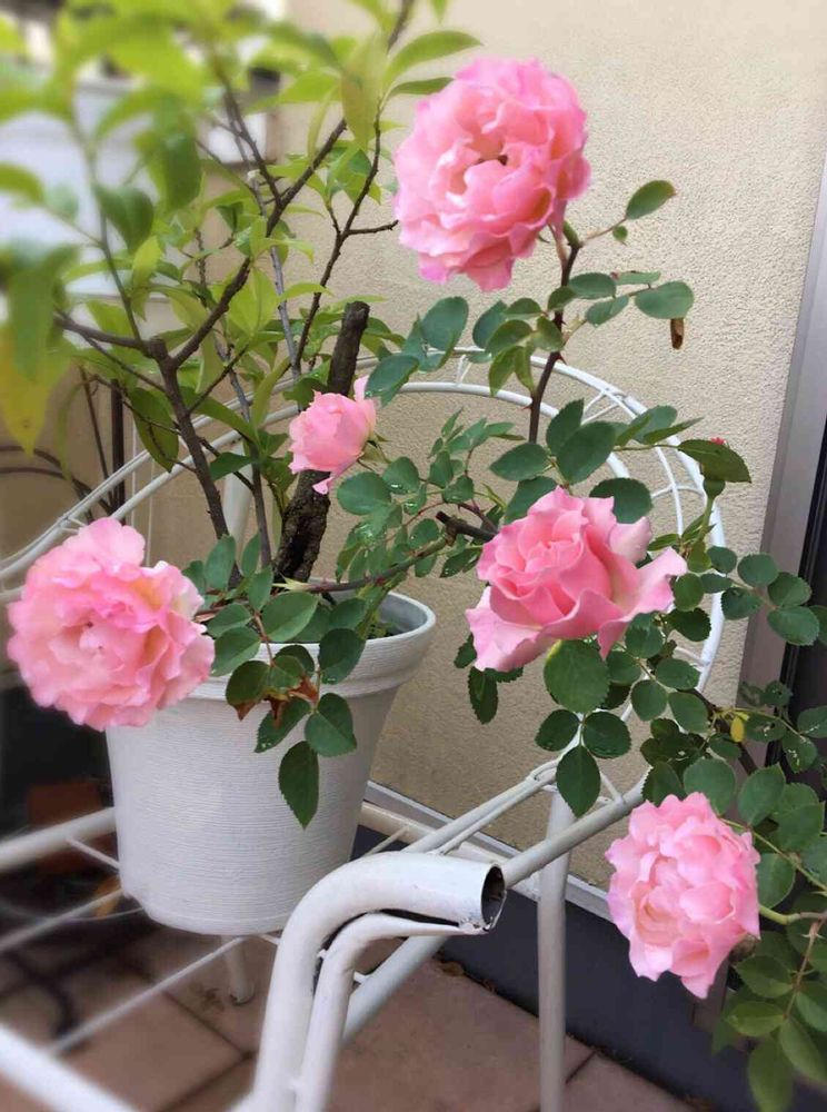小さめのつるバラとして、地植えにしてパーゴラの柱にそわせようかと思っていたのですが、二階の方が環境がいいのでこのまま鉢で育てようかと思案中😕