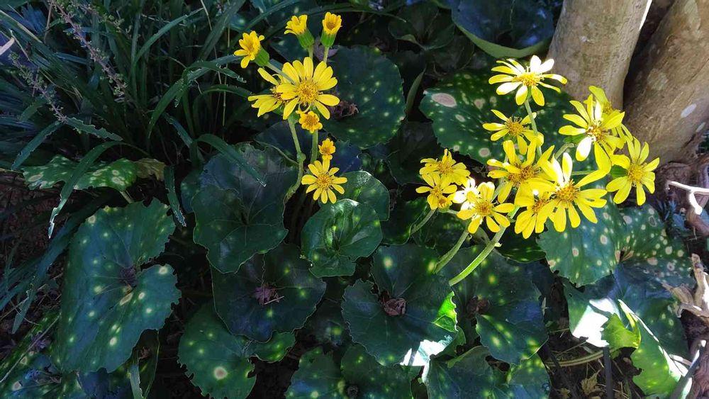 日陰の庭のツワブキですが、いま花が一番キレイに咲いてます!