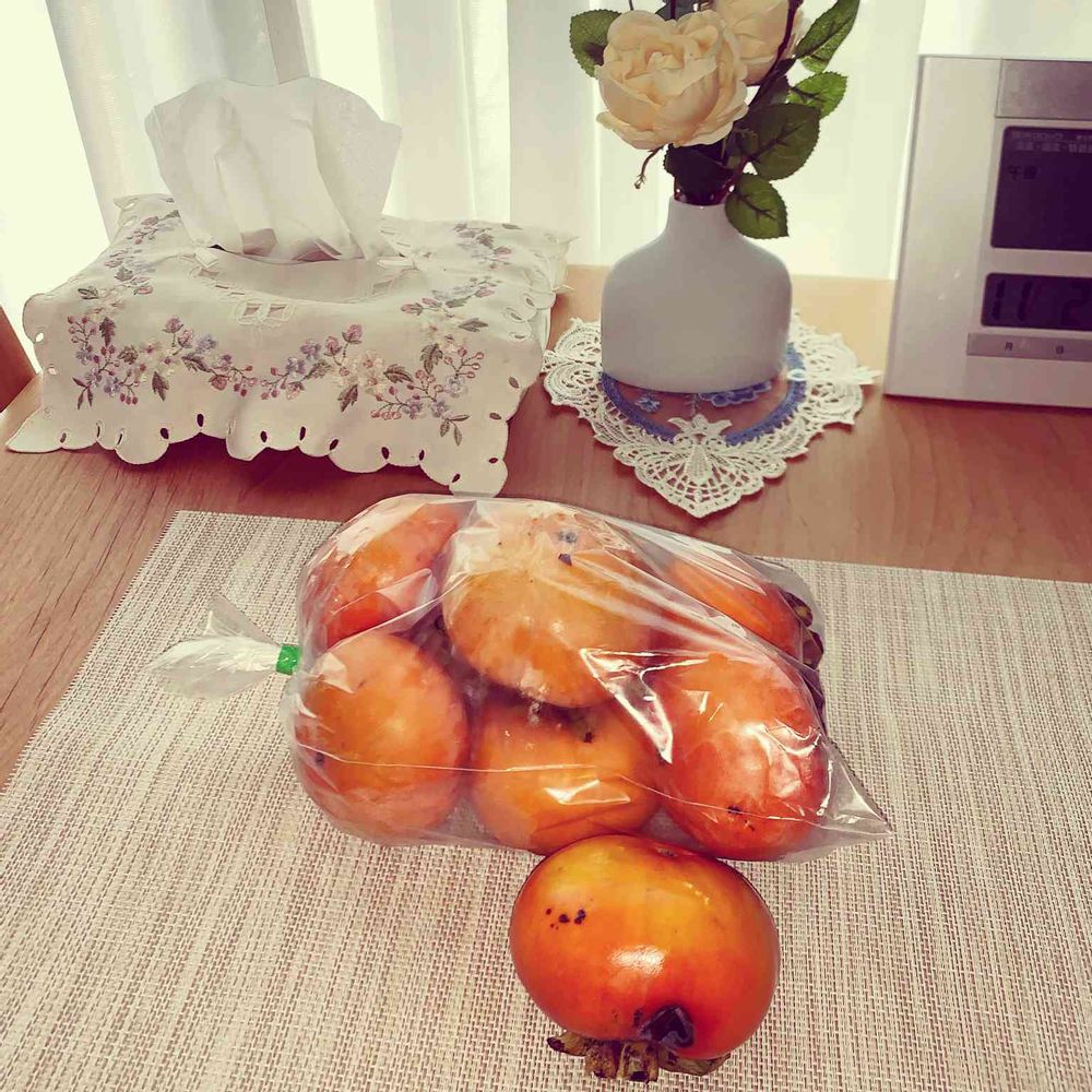 柿は➖嫌い😬…と言っていた夫だったが、皮を剥いて1/4個差し出したら『硬く甘くて美味しい❣️😍』と。