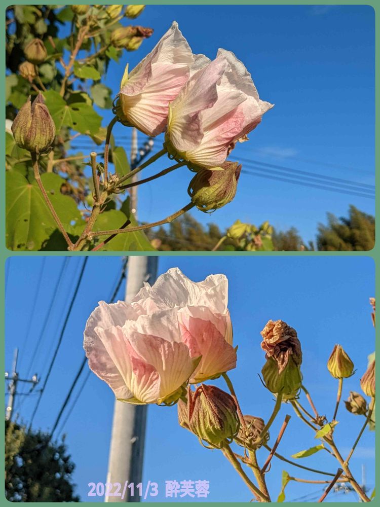 もぐじゆう✧閲覧だけしていますさんの広い庭,フヨウの花,うすいピンク色の投稿画像