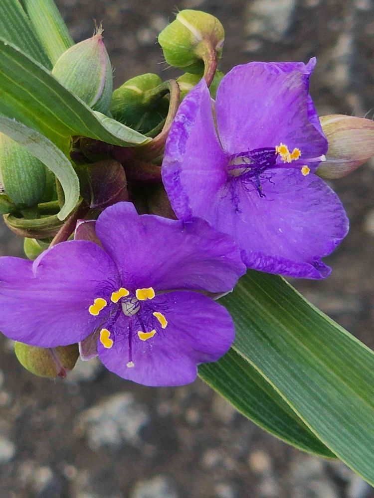カチコチ花壇にまだ咲くムラサキツユクサ💜