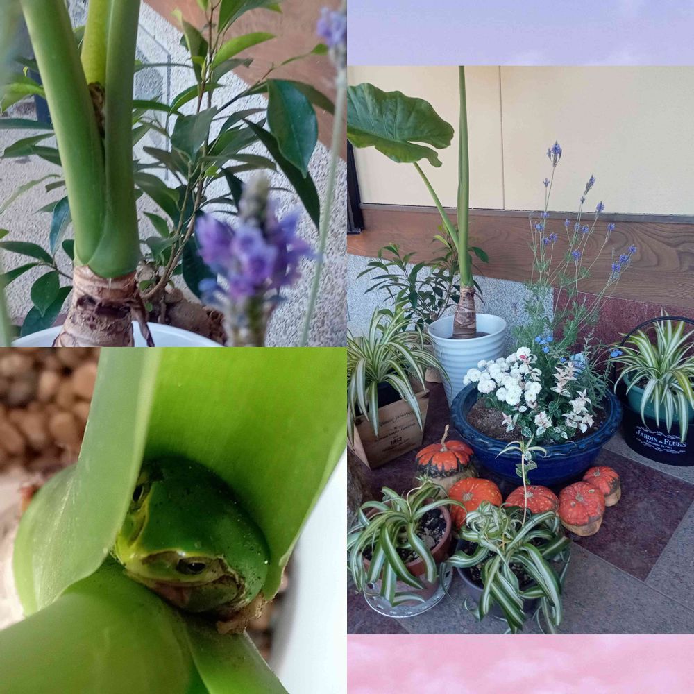 ベランダ改装中のため、オリヅルランを玄関にもってきたらワイワイなっとります💨カエルちゃんはね🐸レースラベンダーの香りに癒やされながらスヤスヤ💤💤💤私も一緒に寝た〜い🥱🥱🥱