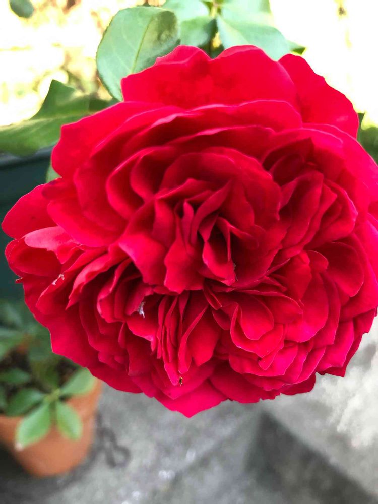 秋のレッドレオナルドダビンチです。春は蕾をつけすぎ、夏は暑すぎでずっとお花が小さかったのですが、秋はふっくら咲いてくれました🌹