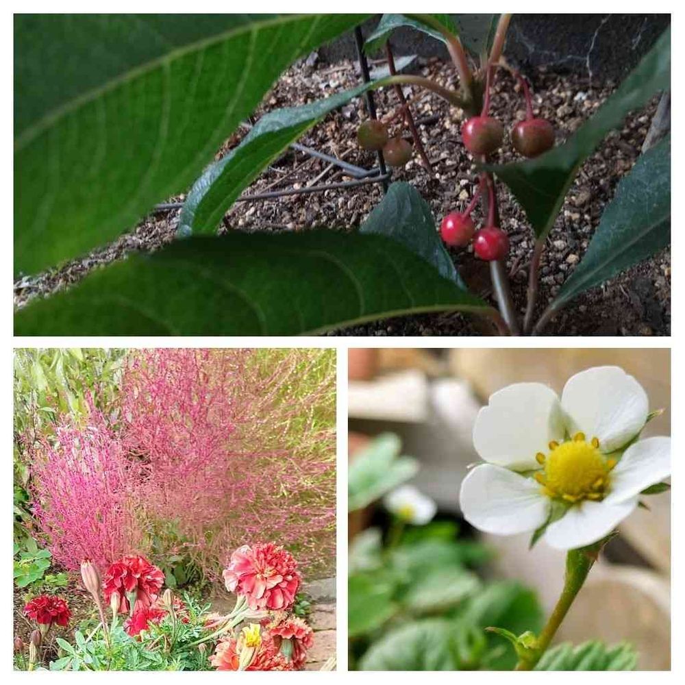 🌿コキアの前にはマリーゴ―ルドが☔に打たれうなだれて😂