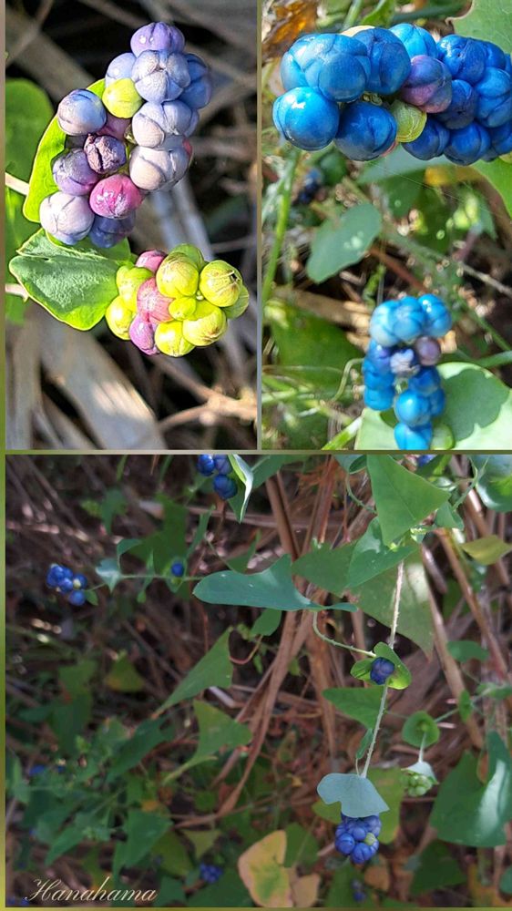 ノブドウよりも艶があり綺麗ですが茎にギッシリトゲがあり触れないです。