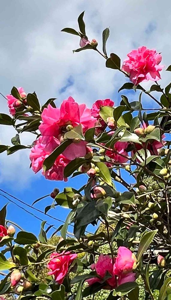 おはようございます🙇八重咲きの💗山茶花の宿~♪青空で美しく💗💗💗🤗👏👏👏