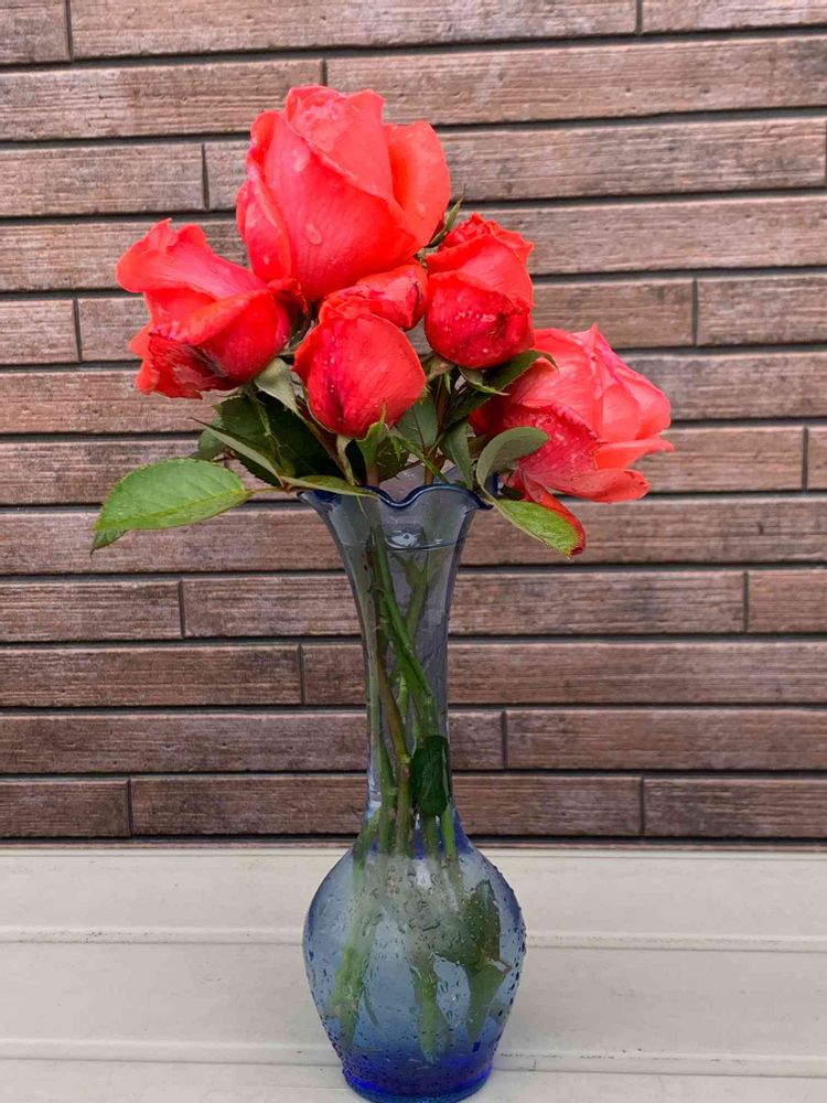 霜のせいで花弁が痛んでしまったイヴ・サンローランを切花しました。❄️🌹😅