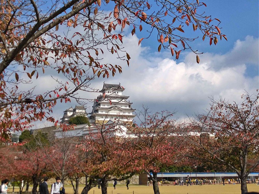 おはようございます☀秋の姫路城に行ってきました。桜の葉っぱ紅葉してました🏯