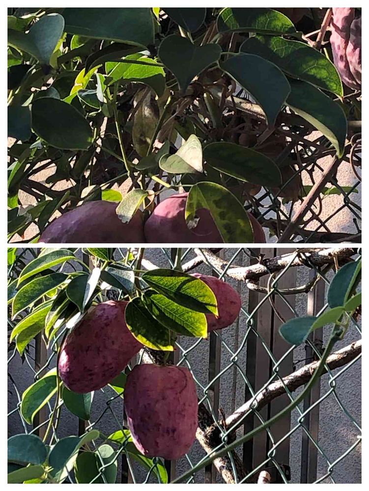 大きなサツマイモ🍠のような実が柵に絡んで生ってます♡ 15㌢弱かな⁉️