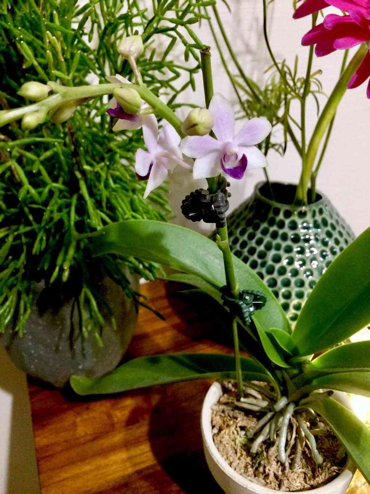 去年初めて育て始めたミニミニ胡蝶蘭が今年咲いてます✨去年よりすこーし花が小さいような気がする。