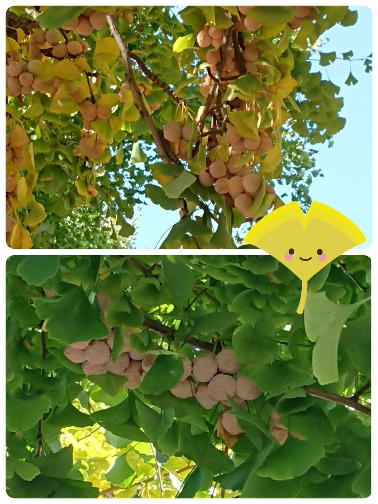 緑の葉っぱにも沢山のぎんなんが付いているわ(o^∀^o)