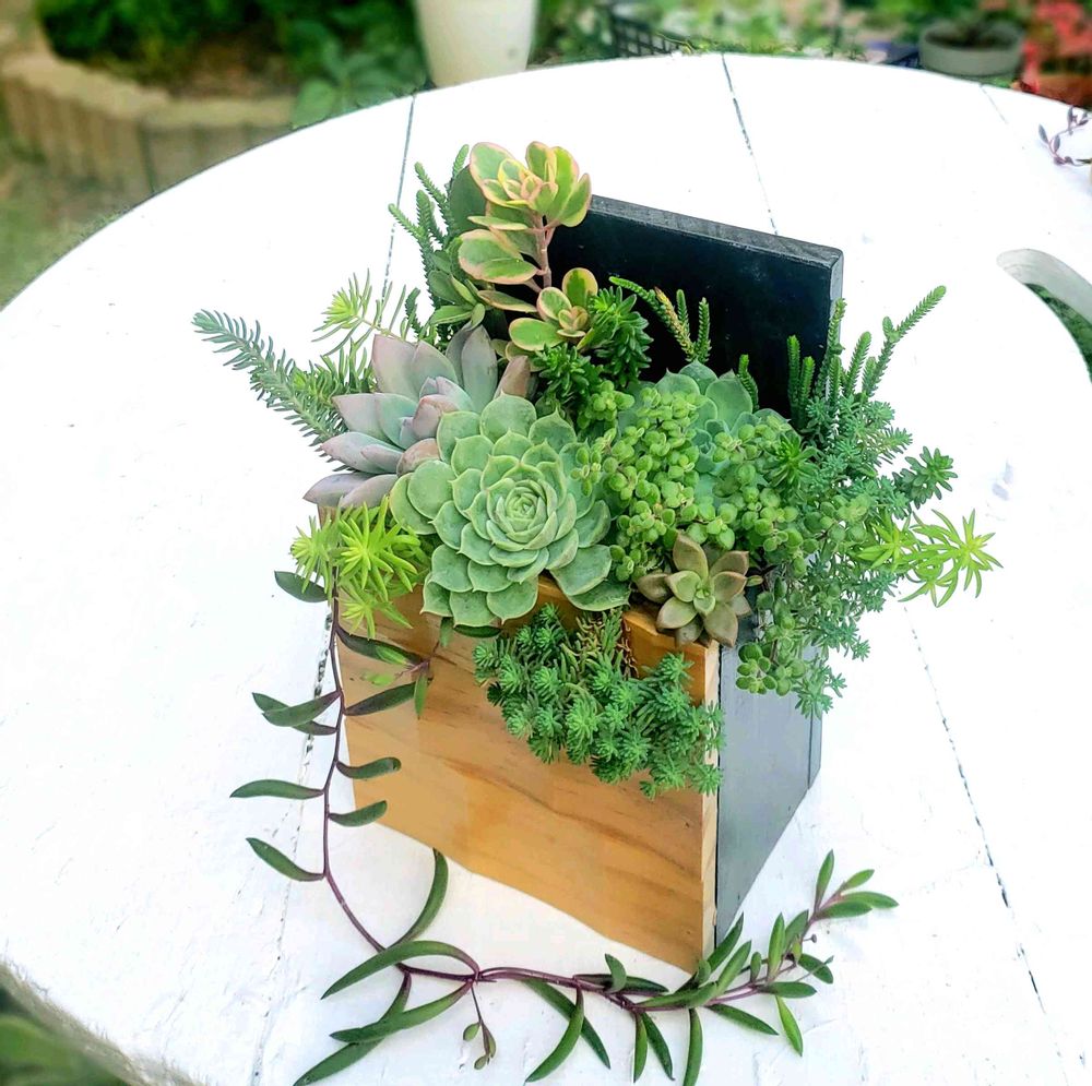 かんこさんからいただいた素敵な木製プランターの寄せ植えが、3か月たってますますいい感じ❣️😄👍🎶