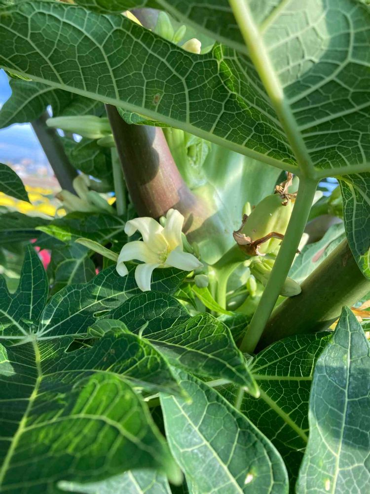 84歳の方が育てているパパイヤの花🌼もうすぐ霜で枯れてしまうのかな❓