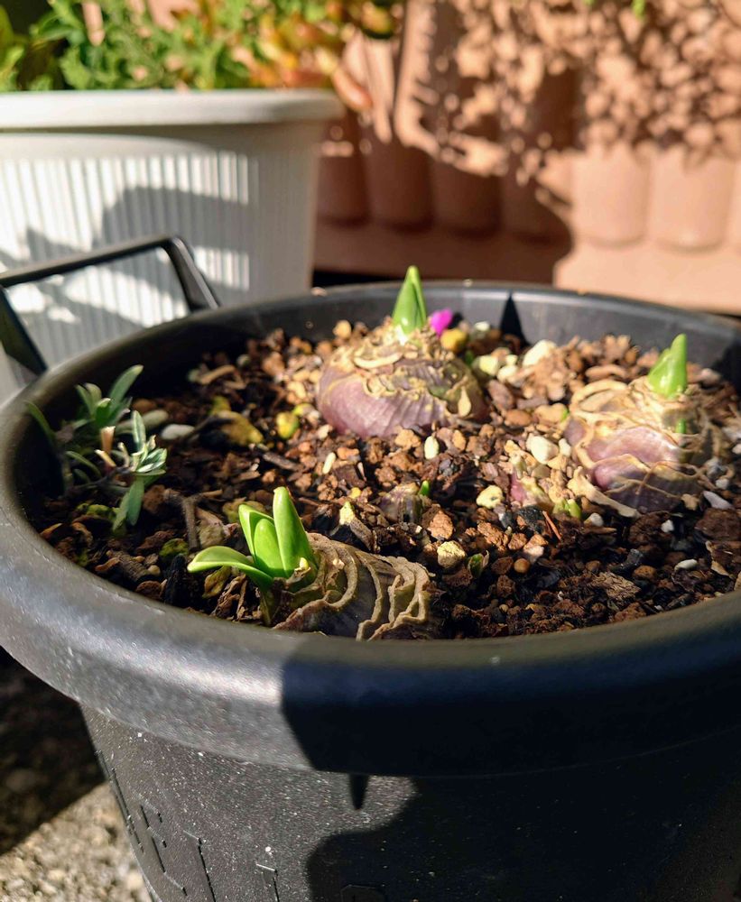 ベランダに置いて完全にカラカラだったけど、芽が出たので、数日前から日向に出してみたよ