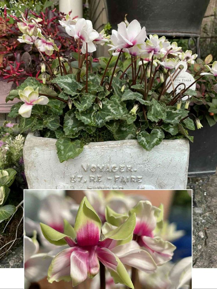 アプローチ,八重咲きミニシクラメン ’ グリーンティアラ ',植木鉢の投稿画像