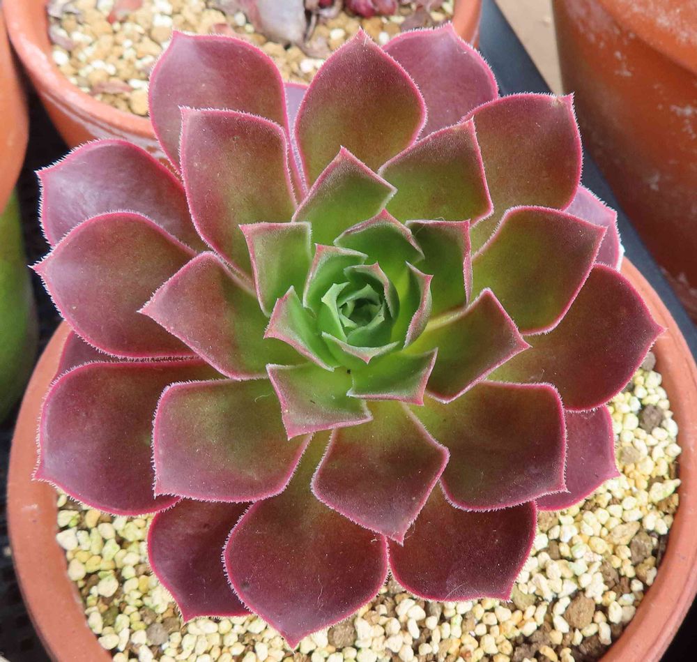 この季節はアエオニウムの変化が激しくて時々ハッとさせられる。このフェニックスフレームもちょっと前まで緑だったのが,急に色が変わってきた。