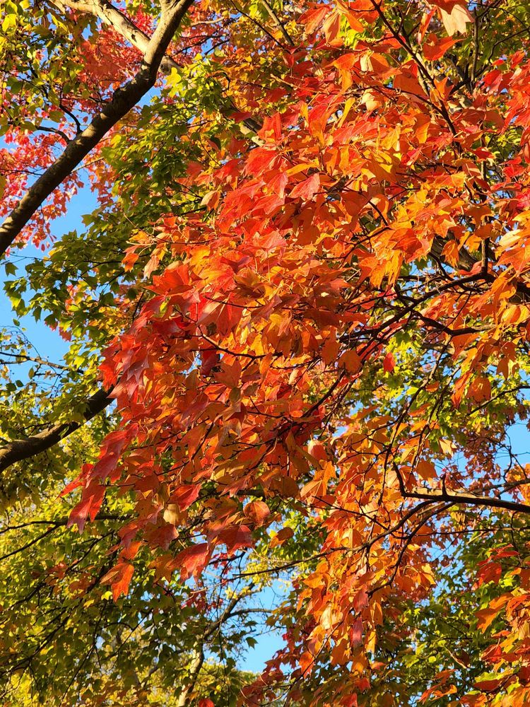 西陽が眩しい時間帯だったので、紅葉も黄葉も輝いて見えました✨