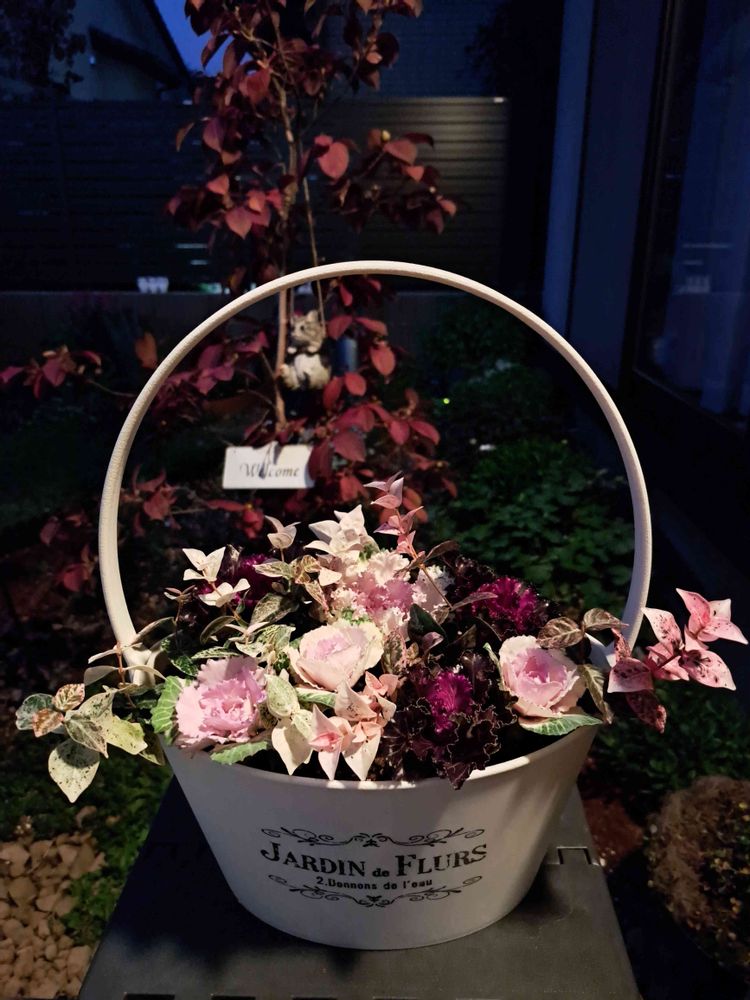 葉牡丹とハツユキカヅラだけの寄せ植え🍃寒冷地の強い味方です😆