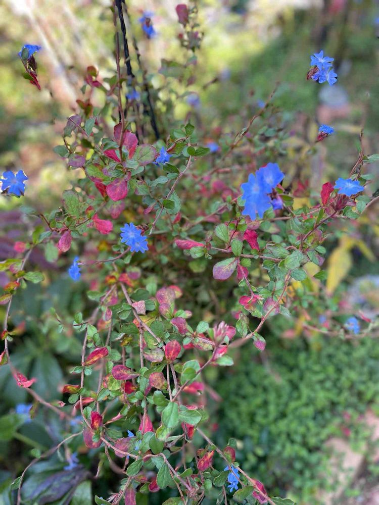 紅く色づいた葉っぱが綺麗なルリマツリモドキ💙ブルーの花の色も濃く…💕