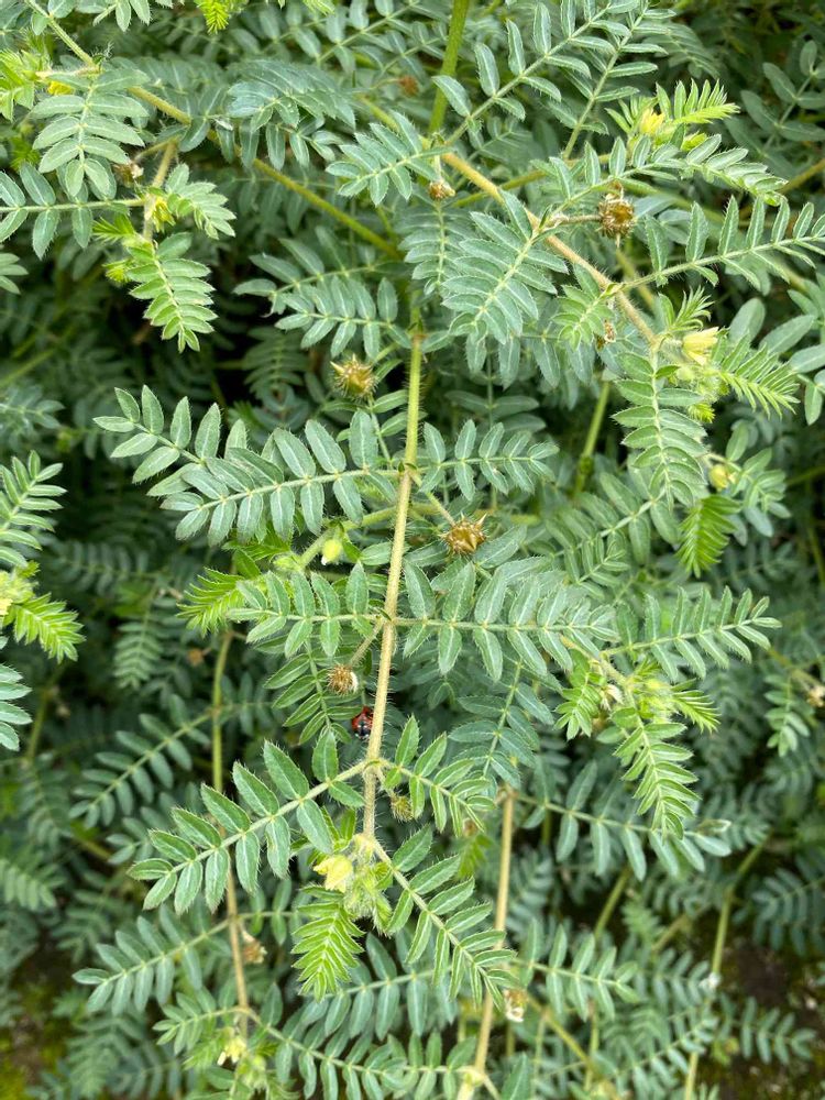 羽状複葉でマメ科の葉っぽいと思いましたが、奇数羽状複葉ではなく、偶数羽状複葉で、毛だらけです。