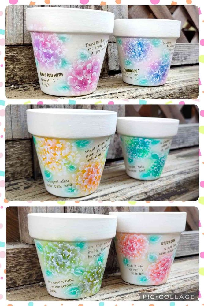 紫陽花鉢はカラフルに何色も並べたくなります🌈