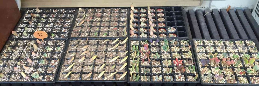 左から二番目の二つはホームセンターの多肉用土で、右三つは赤玉と鹿沼とホームセンター多肉用を調合しました!