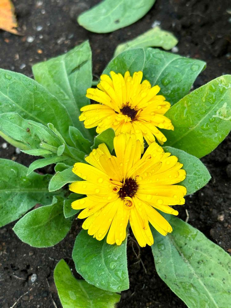 レモン色のキンセンカさん、可愛いですね🎵。元気そうな葉っぱさんたちに支えられて、長く楽しませてもらえそう⁉️😊。
