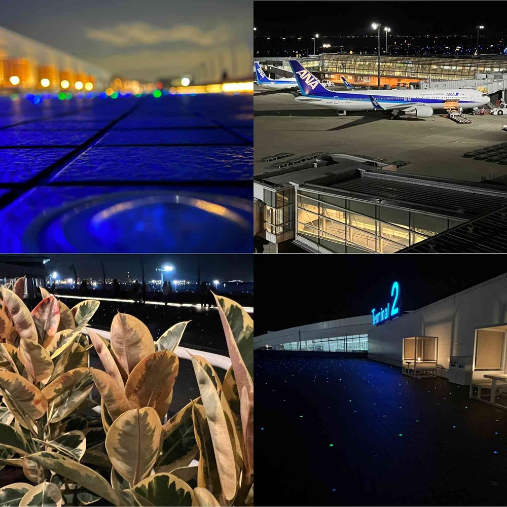 夜の空港✈️でお出かけですか? 朝の安い便で出かけているので 知らない世界です。🍄