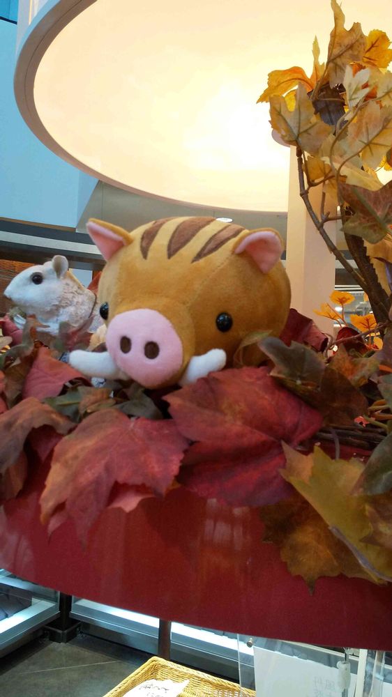 丹波栗の美味しいやながわ本店にて、「プラタナス🍁」と「ウリボウ🐗」をパチリ!📸😊😄🌰😋🌞✌️