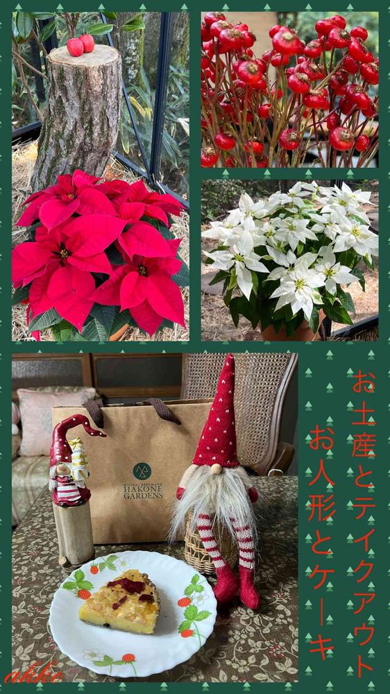昨日の箱根のお土産の人形と、テイクアウトのケーキ