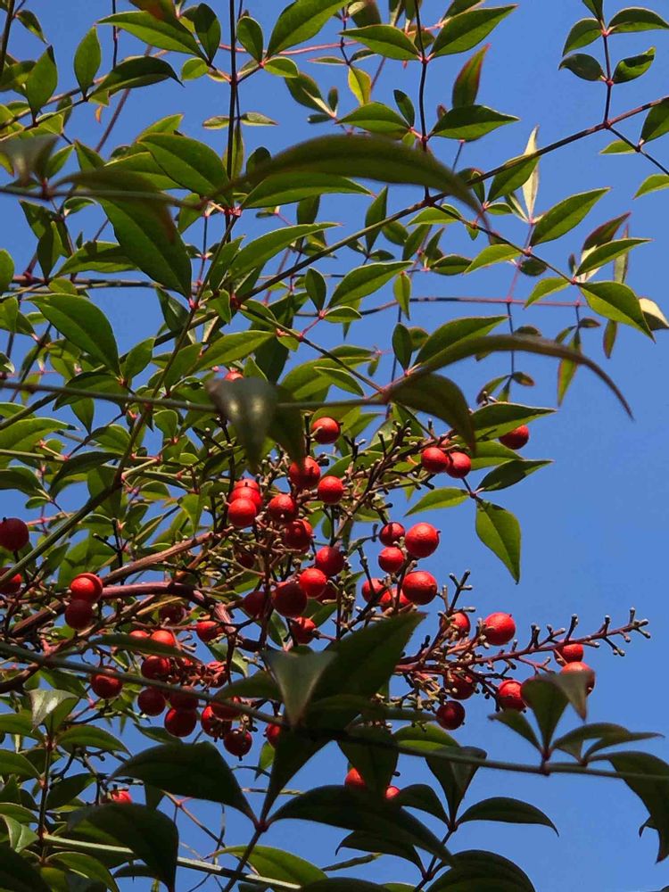 綺麗な青空に、南天とのコラボ、上手に撮れてますね〜(*´˘`*)♡"💙❤️💙❤️