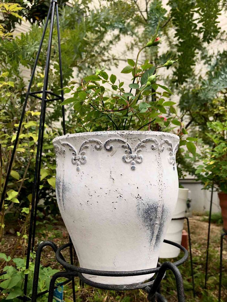 わあ、素敵な鉢ですね。春にミニバラが咲くのが楽しみですねえ(*˘︶˘*).。.:*♡