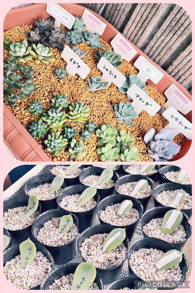 荒れ放題だったポイポイ鉢を育成鉢に変更しました。今日はパッカーンしてた子や徒長してた子をもぎもぎ葉挿し&チョンパ✂️