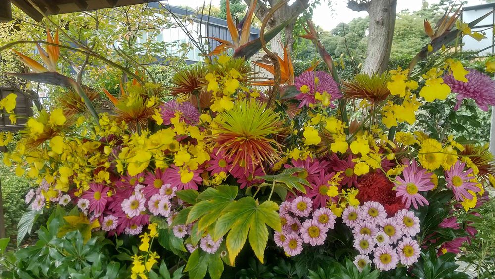 池坊の家元による「希望の光」と題された花手水、豪華でした💕