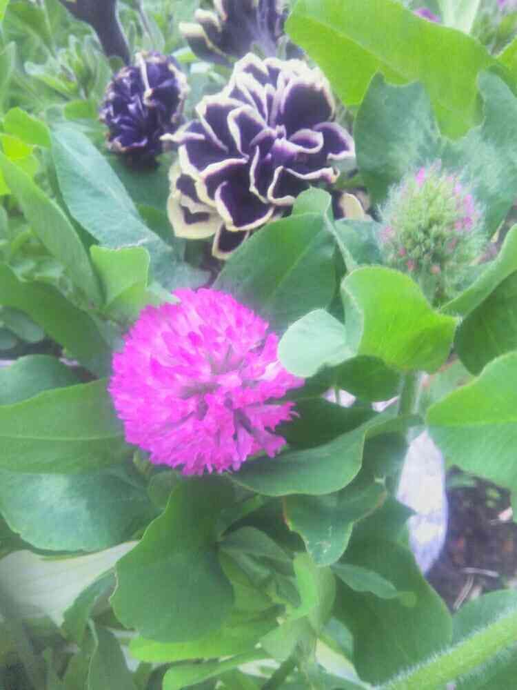 アケミさんの小さな庭,アカツメクサ,ペチュニア 花衣 黒真珠の投稿画像